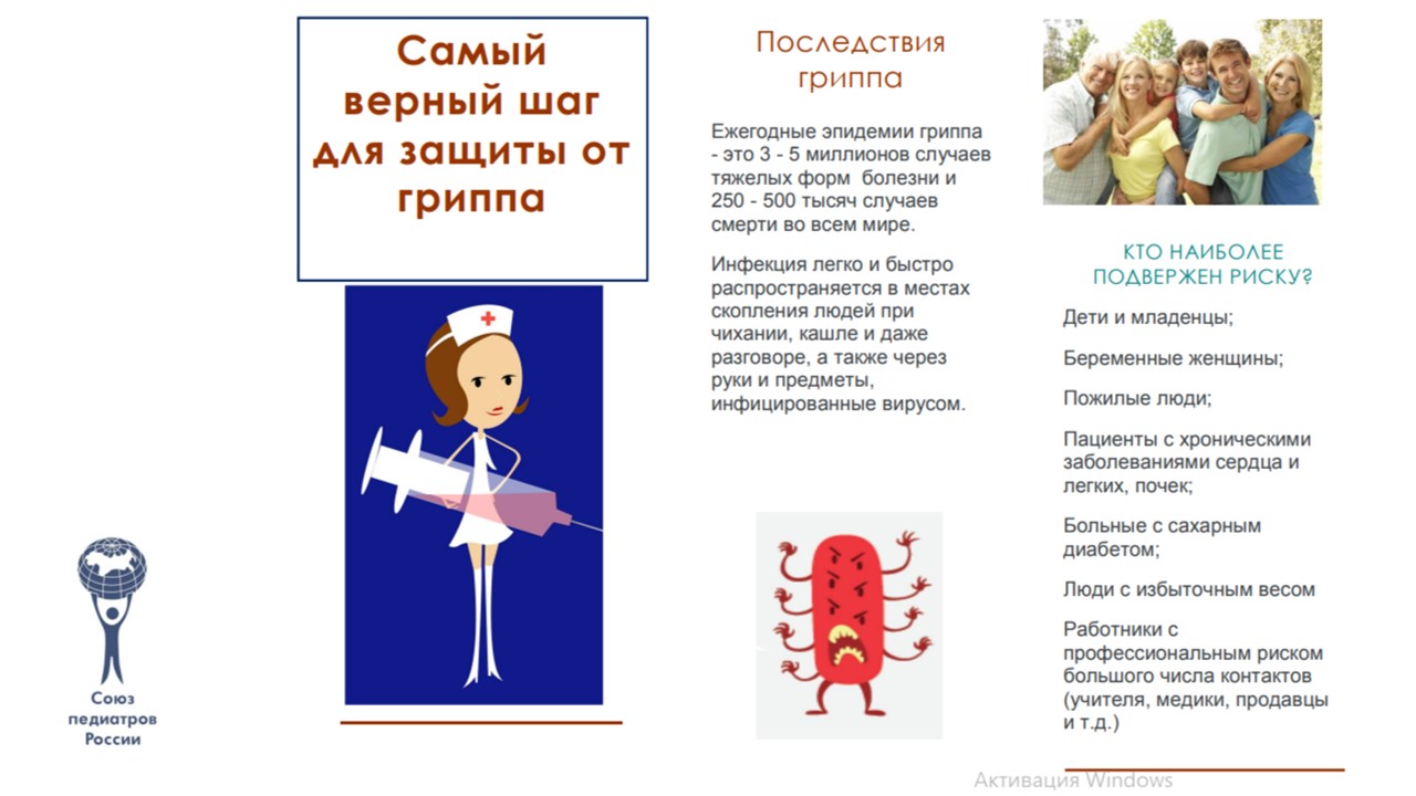 Прививку от гриппа врачи рекомендуют делать всем взрослым и детям с 6 месяцев. Особенно тем, кто входит в группу риска:
